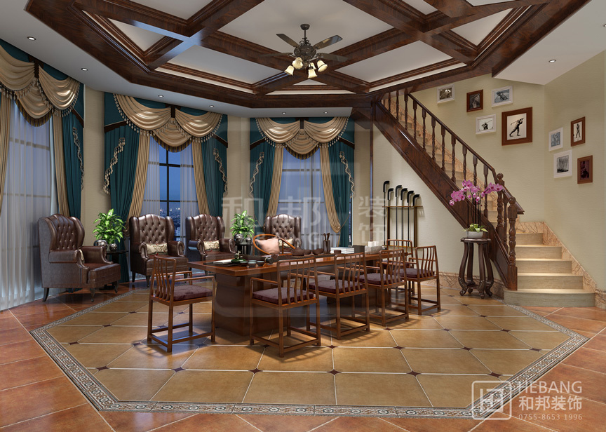 一種磅礴大氣的中式氛圍,別具一格而精致典雅,讓進入到空間里的人眼前一亮,每個細節都精雕細琢,耐人尋味。