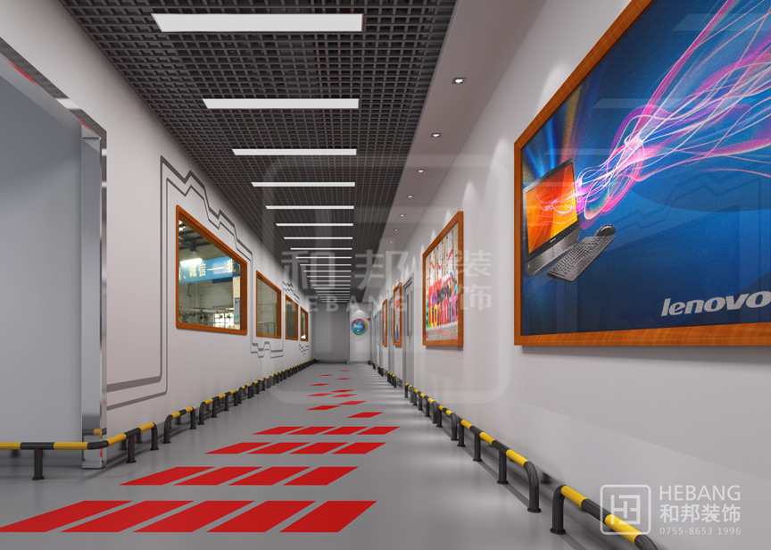 現(xiàn)代感與科技感相結(jié)合,墻面飾有太空艙紋理結(jié)合地面的紅色指引讓人如臨太空站,一種激動人心的時刻不正是進到展館的時候嗎?