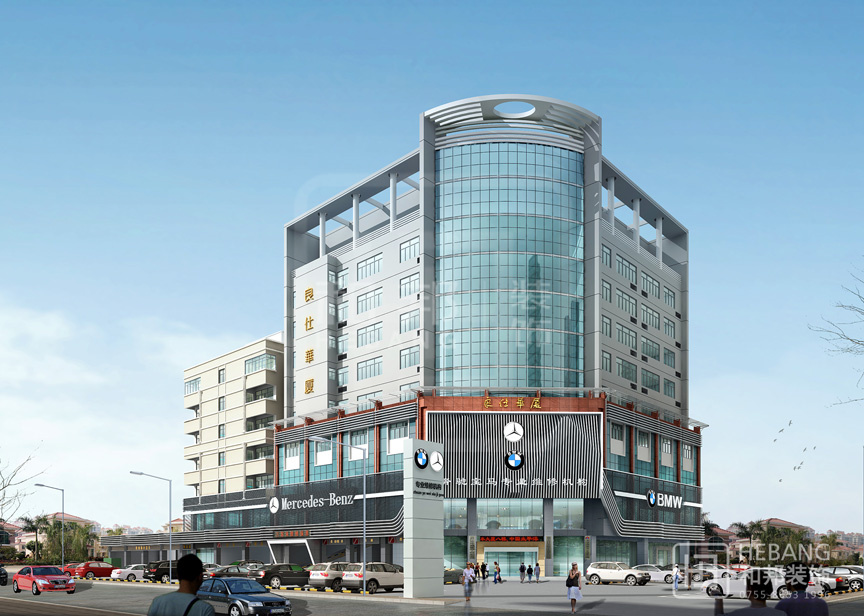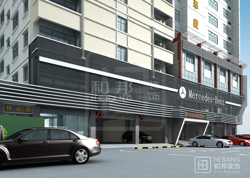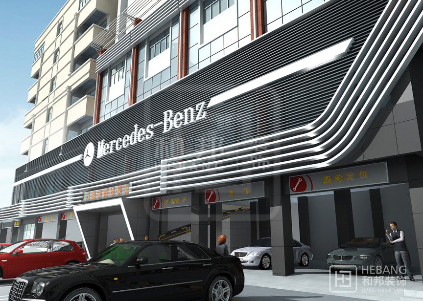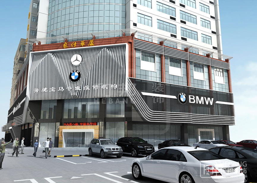 | 設(shè)計說明 | 高端大氣的現(xiàn)代設(shè)計:以汽車頭部為原型設(shè)計的門頭,大膽新穎,創(chuàng)新十足。分區(qū)設(shè)計,奔馳與寶馬維修店分布兩旁,使整個維修機構(gòu)美觀大方。 | ||||