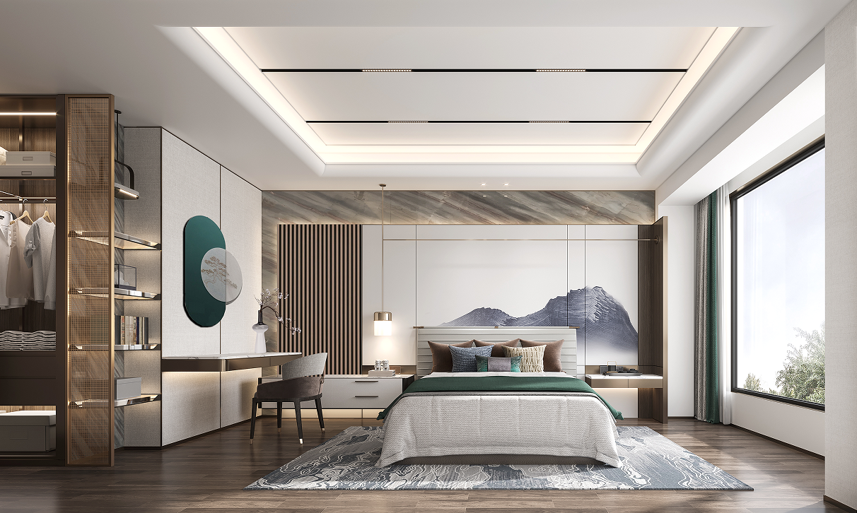 二層主臥空間環(huán)景式體驗(yàn)主臥套間形式,擁有超大景觀視野,并配備了獨(dú)立衣帽間、衛(wèi)浴室。軟裝將裝飾的重點(diǎn)放在了色彩的呼應(yīng)關(guān)系、與面料觸感與肌理給予人的真實(shí)體驗(yàn)之上,隨處可見的進(jìn)口家具產(chǎn)品將主人的品味于隨意處散發(fā),呈現(xiàn)了一處格調(diào)高雅的休憩空間。